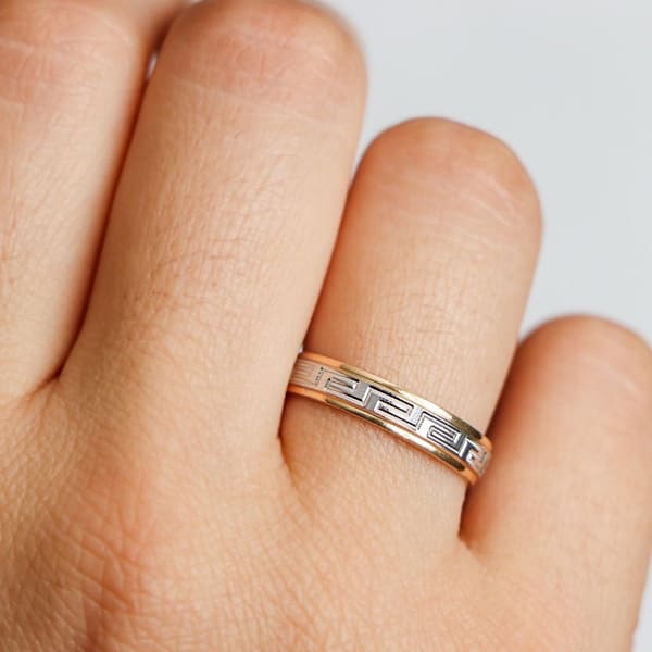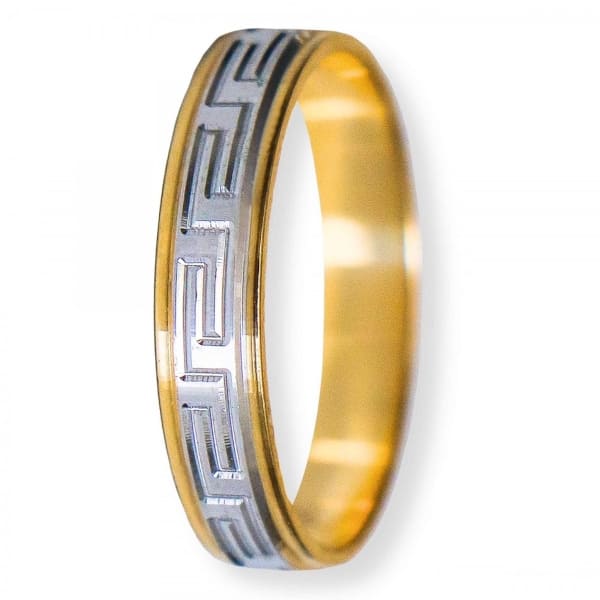 Alianza Oro Bicolor de boda con forma greca de oro de 18 quilates. La alianza fina y ligera de alianzas clásica, de 4 MM.