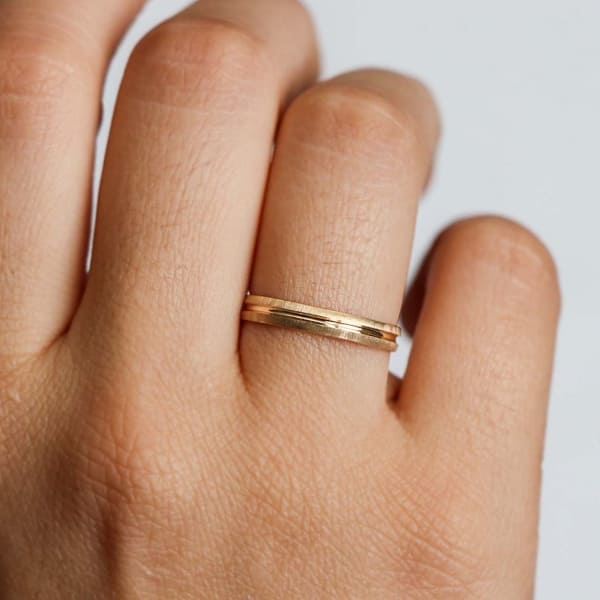 Alianza Fina Oro de boda clásica media caña con un ranura en su interior de oro de 18 quilates.