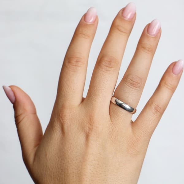 Alianza Oro Blanco de boda clásica media caña de oro de 18 quilates. La alianza fina y ligera de alianzas clásica, de 4 MM.