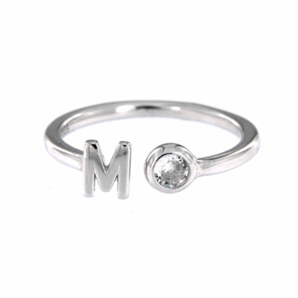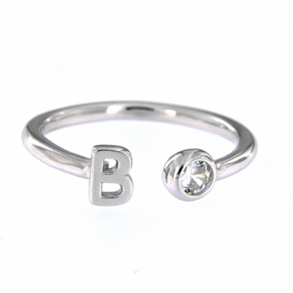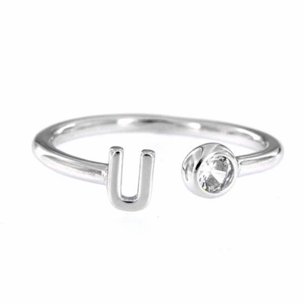 Metal: Anillo de plata ajustable con la inicial y una circonita.