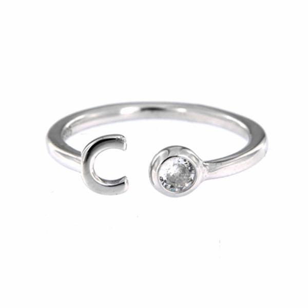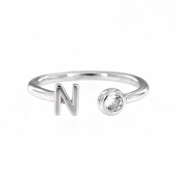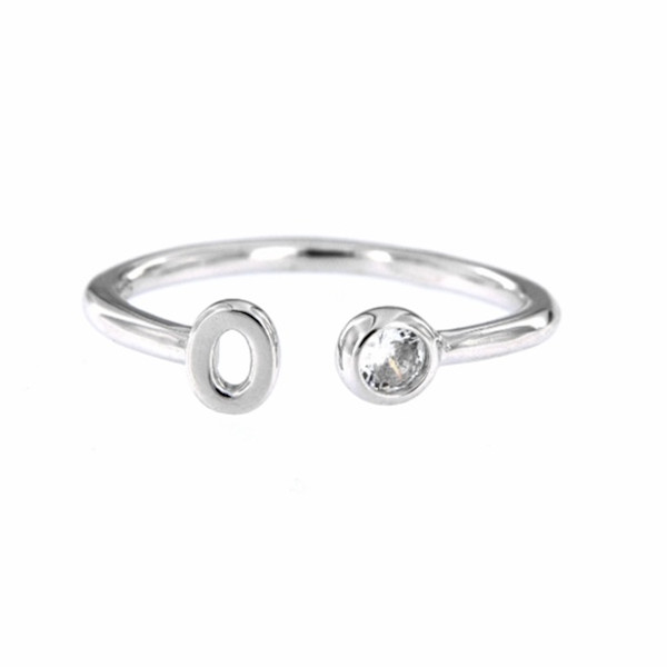 Anillo de plata ajustable con la inicial y una circonita.
